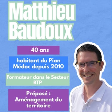 Découverte aujourd'hui de Matthieu Baudoux, 40 ans, Formateur dans le Secteur BTP. Domaine de prédilection : Mobilités, Sécurité et Aménagement du Territoire.
