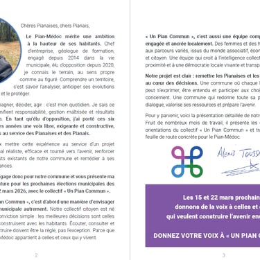 Le collectif Un Pian Commun est heureux de vous le livret de présentation de l'équipe et du projet complet pour Le Pian-Médoc.