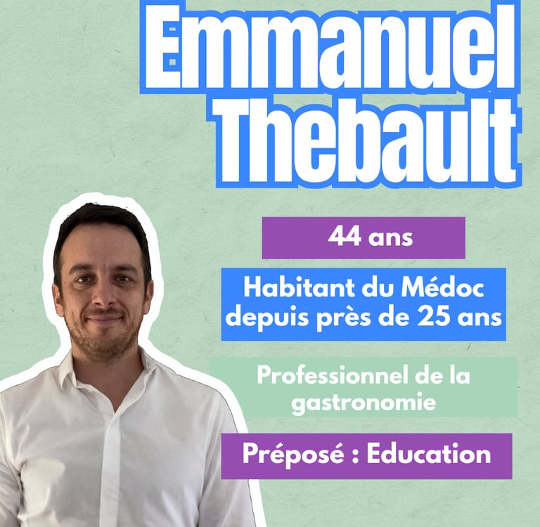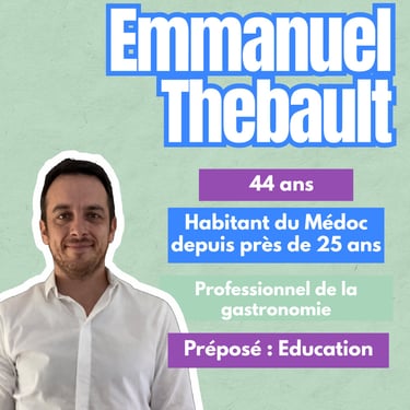 Découverte aujourd'hui de Emmanuel Thebault, 44 ans, professionnel de la gastronomie et représentant des parents d'élèves aux Airials. Domaine de prédilection : l'éducation.