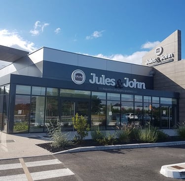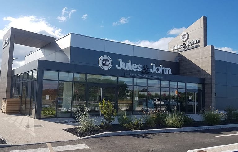Chez Jules & John, situé entre la station Total et Keep Cool, en face de la zone commerciale du Centre Leclerc.