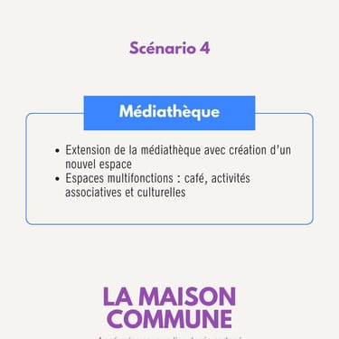 📍 Scénario 4 : Extension de la médiathèque avec la création d’un nouvel espace et proposer des espaces multifonctions : café, activités associatives et culturelles.