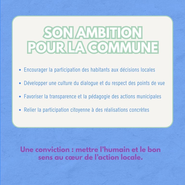 Des femmes et des hommes engagés, aux expériences et aux parcours différents, et unanimement animés par la même envie : agir utilement pour notre commune.