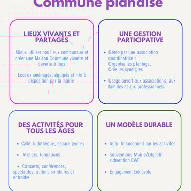 🏠 La "Maison Commune" : un vrai lieu de vie pour tous (café, ateliers, spectacles) géré de façon participative et bénévole.